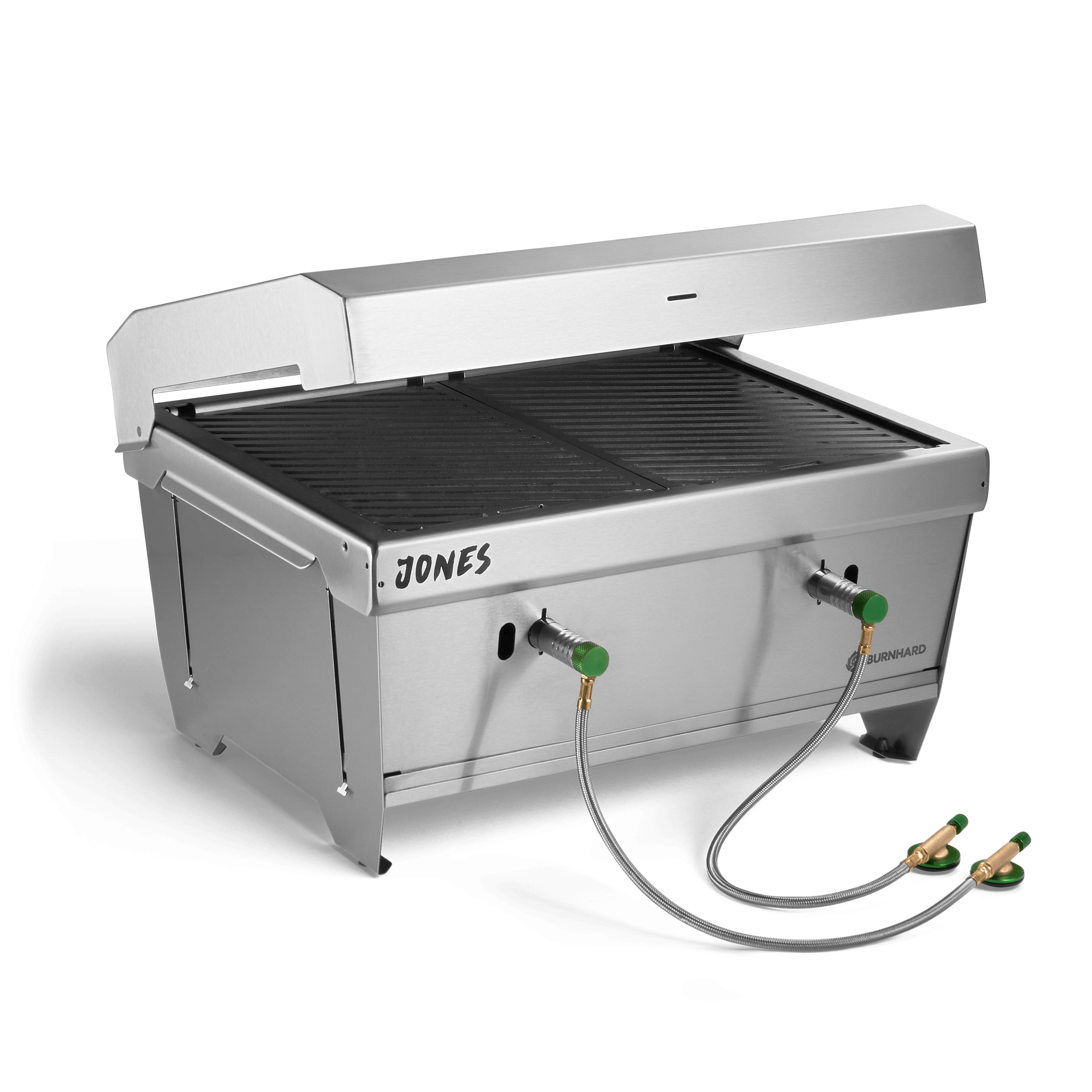 Zwei stufenlos regulierbare 3,2 kW‑Brenner liefern dir mit Deckel bis zu 500 °C – und BBQ-Ergebnisse wie zuhause.