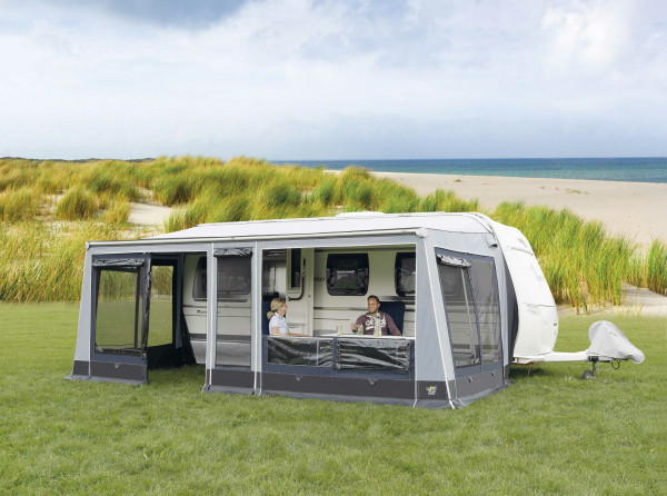 Für alle, die auch beim Camping nicht auf Komfort verzichten möchten: Höchste Stoffqualität, edelstes Design und maximale Qualität sorgen bei diesem Markisenzelt für einen entspannten Urlaub der Extraklasse.