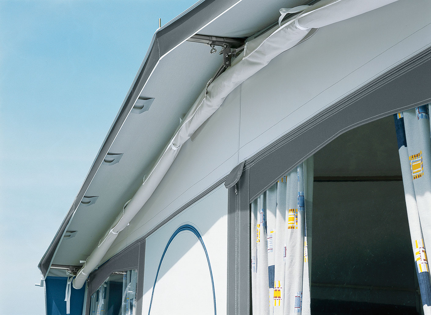 Dieses Universal Vorzelt-Sonnendach können Sie in wenigen Minuten aufbauen. Bei starkem Wind und Regen oder während Ihrer Abwesenheit ist es schnell unter dem Vordach verstaut. Eine ideale Ergänzung Ihrer Campingausrüstung. Passend für fast alle Brand-Ganzeinzugszelte mit Giebel und Vordach. Spezialadapter und Giebelstangen sorgen für eine optimale Passform, geben den notwendigen Halt auch zum Vorzelt. Vorzelt und Sonnendach bilden eine kompakte Einheit. Einmal am Zelt fixiert, ist der Abbau nicht nötig. Bei widrigen Witterungsverhältnissen wird das Sonnendach durch zwei Personen einfach aufgerollt. Verstaut unter dem Vordach des Vorzeltes ist das Sonnendach vor Wind und Regen geschützt.